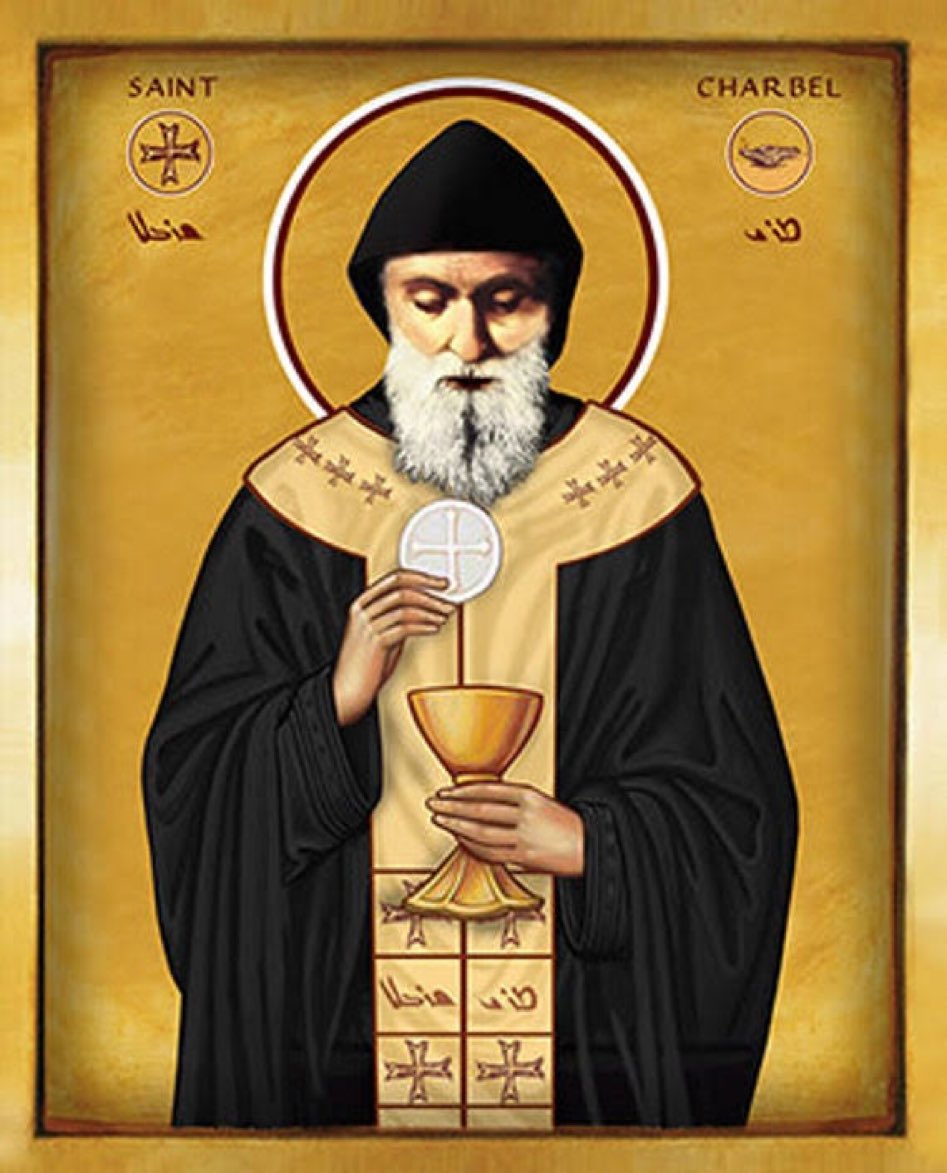 São Charbel Makhlouf – Nasceu no dia 8 de maio de 1828 em Bekaa Kafra, ao norte do Líbano, de pais virtuosos. Seu pai morreu quando ele tinha 8 anos. Fez-se monge, sacerdote e depois ermitão. Morreu no dia 24 de dezembro de 1898, em grande esplendor de santidade.