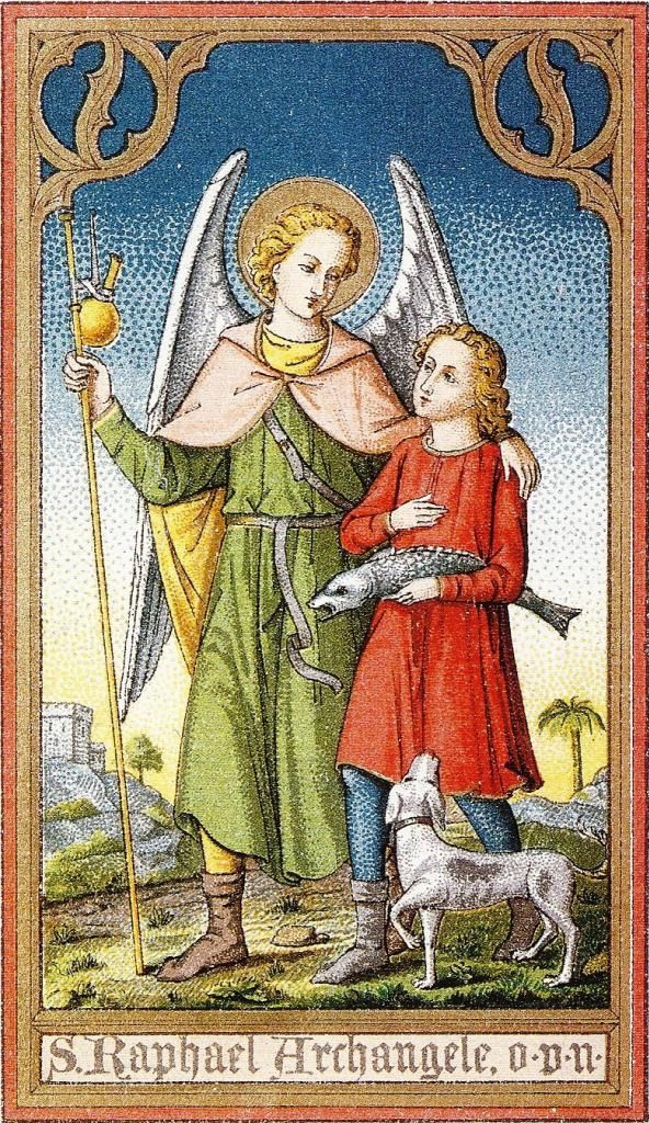 GLORIOSO ARCANJO, SÃO RAFAEL, grande Príncipe da Corte Celeste, ilustre por vossos dons de sabedoria e graça, guia dos viajantes, consolador dos atribulados e refúgio dos pecadores, eu vos suplico que me ajudeis em todas as minhas necessidades e provações desta vida, como fizestes ao ajudar o jovem Tobias em sua jornada. E, uma vez que sois o “médico divino”, humildemente peço-vos para curar minha alma de suas muitas enfermidades e meu corpo dos males que o afligem, se este favor for para o meu maior bem.